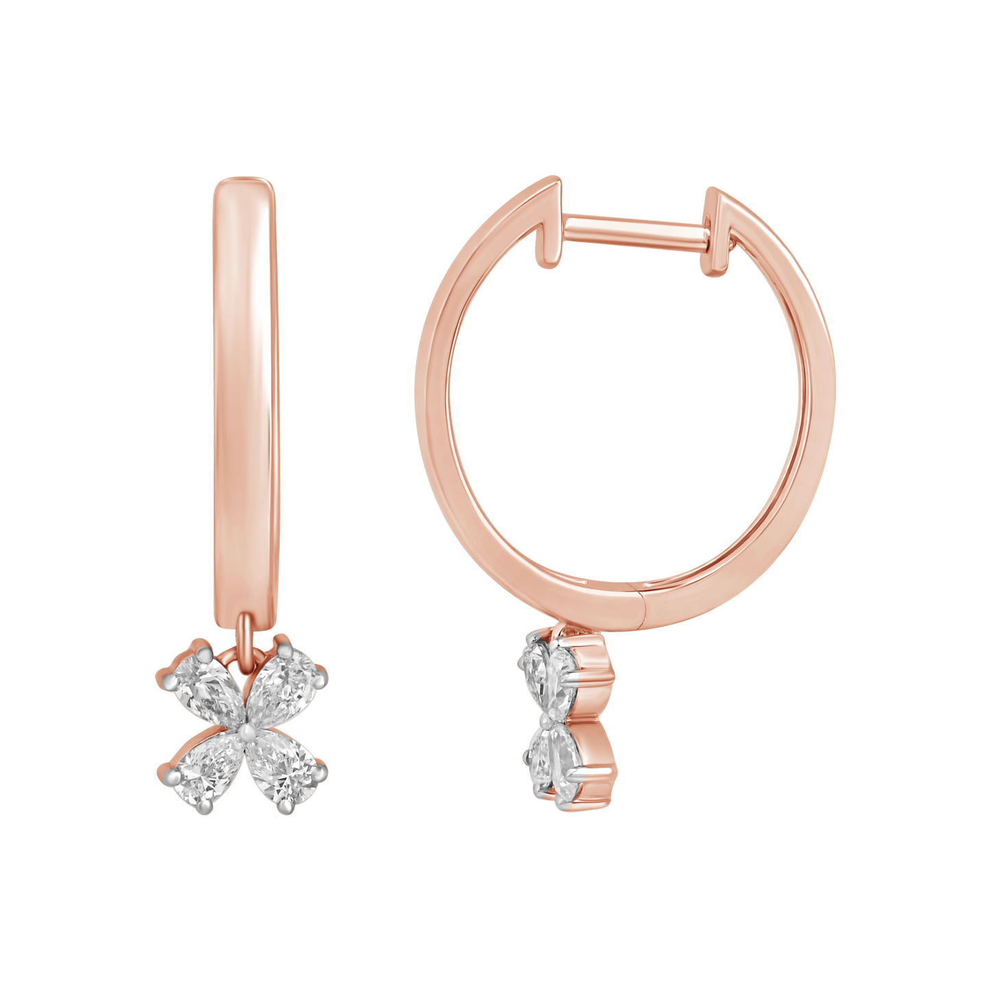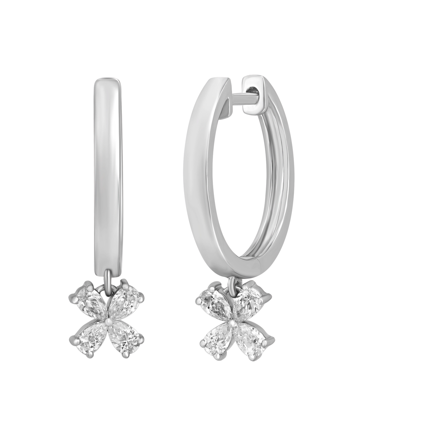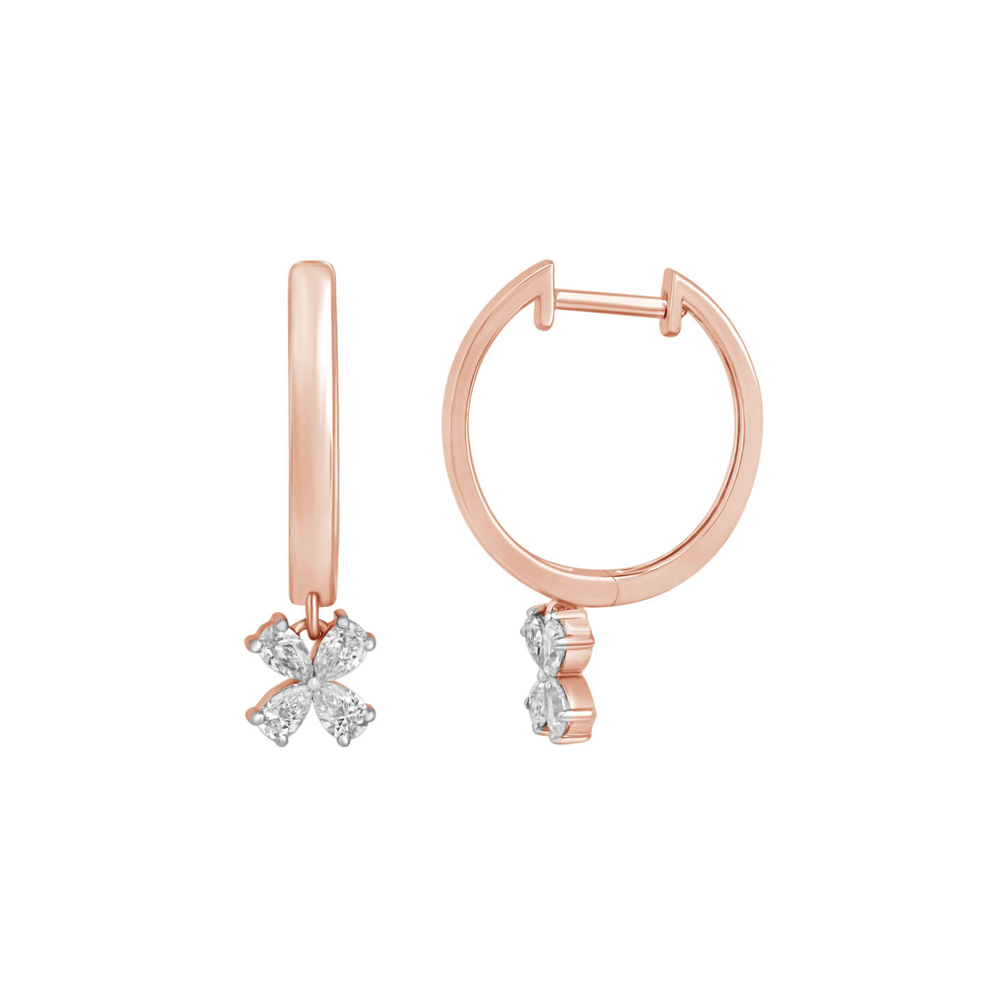 Each earring features four lab-grown pear-shaped diamonds arranged to form a cohesive, sculptural drop. The setting is designed to keep the diamonds visible from multiple angles while allowing light to pass through freely. This balance enhances brilliance while preserving the clarity of the overall form. The huggie closure provides stability, ensuring the drop moves fluidly without pulling or shifting.