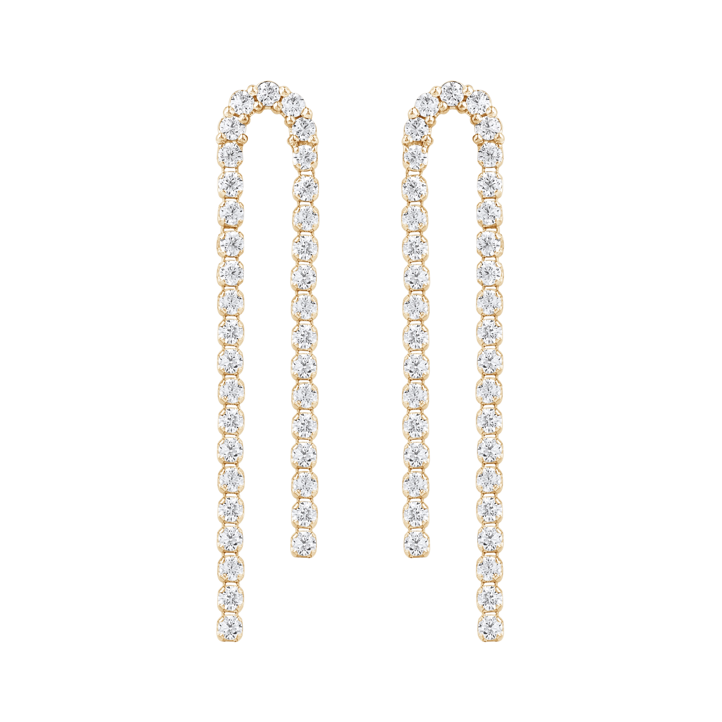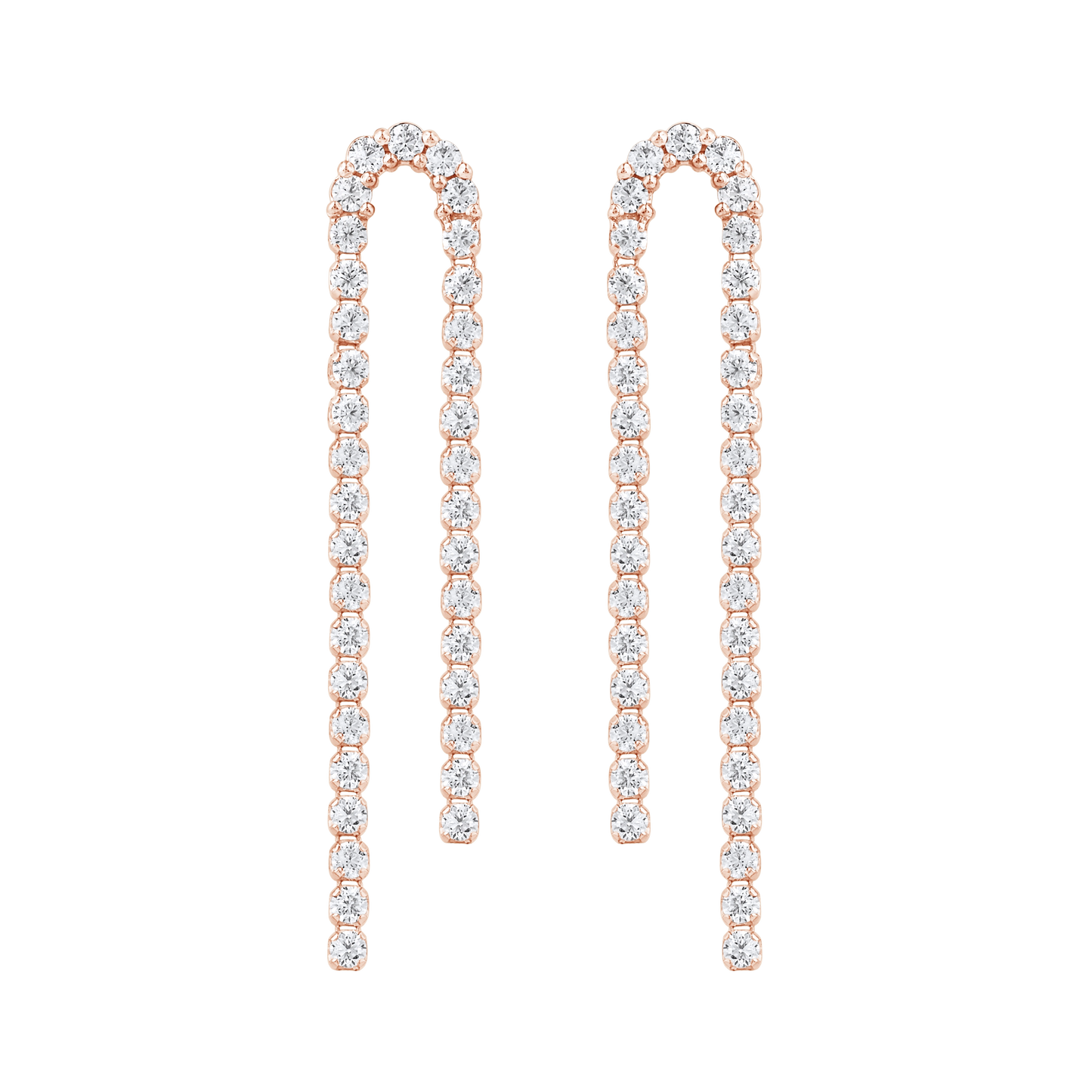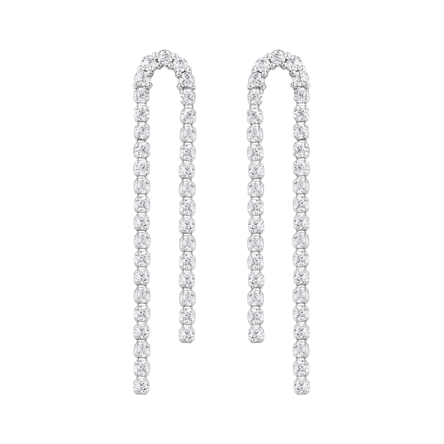 The Continuum Curve Drop Earrings explore movement through form rather than direction. A gently arched silhouette replaces the straight line, allowing the diamonds to follow a softened path that feels fluid and unforced. Each curve introduces a sense of ease, as though the piece has settled naturally into its shape.