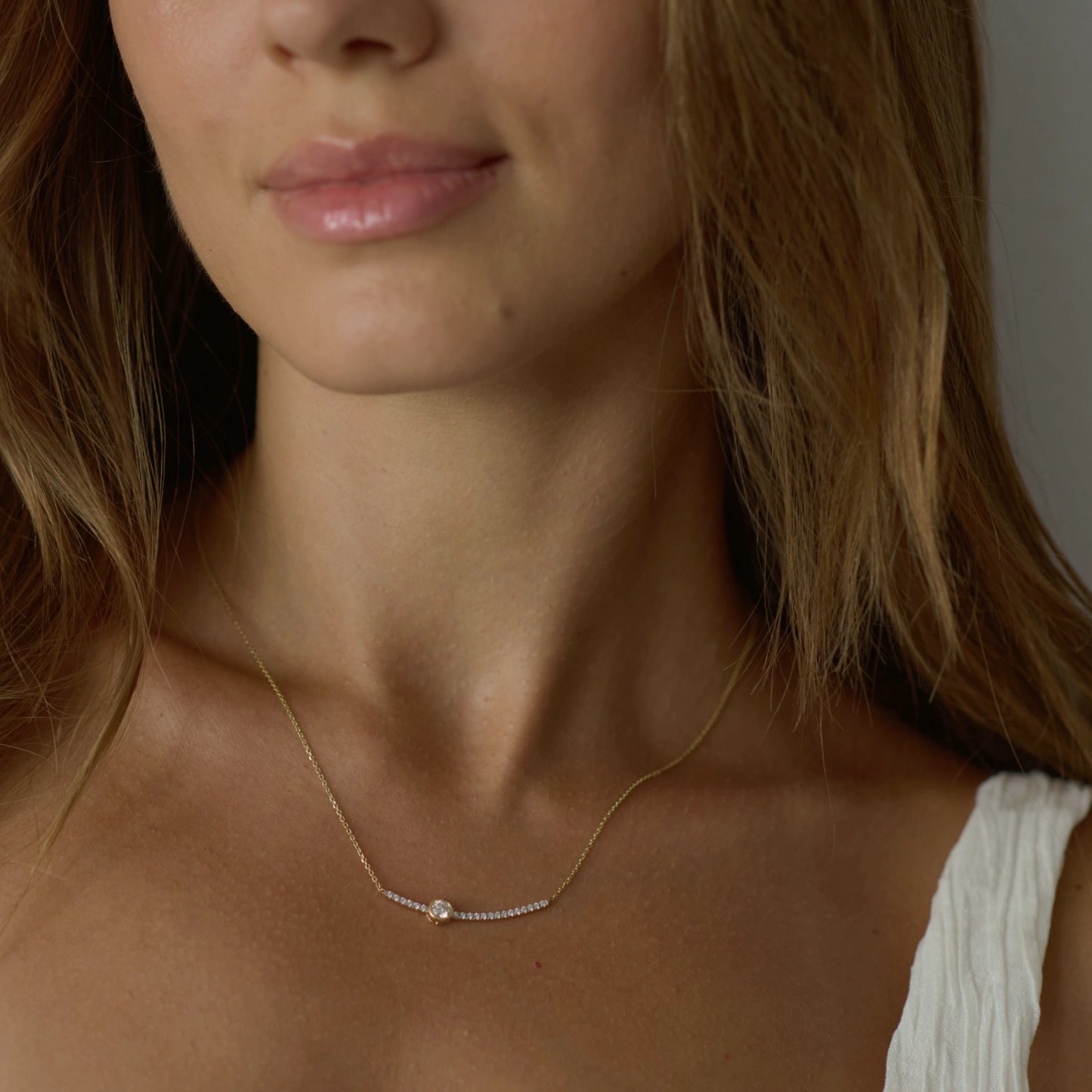 A golden crescent of light—centered by a round diamond, curved to follow your line.